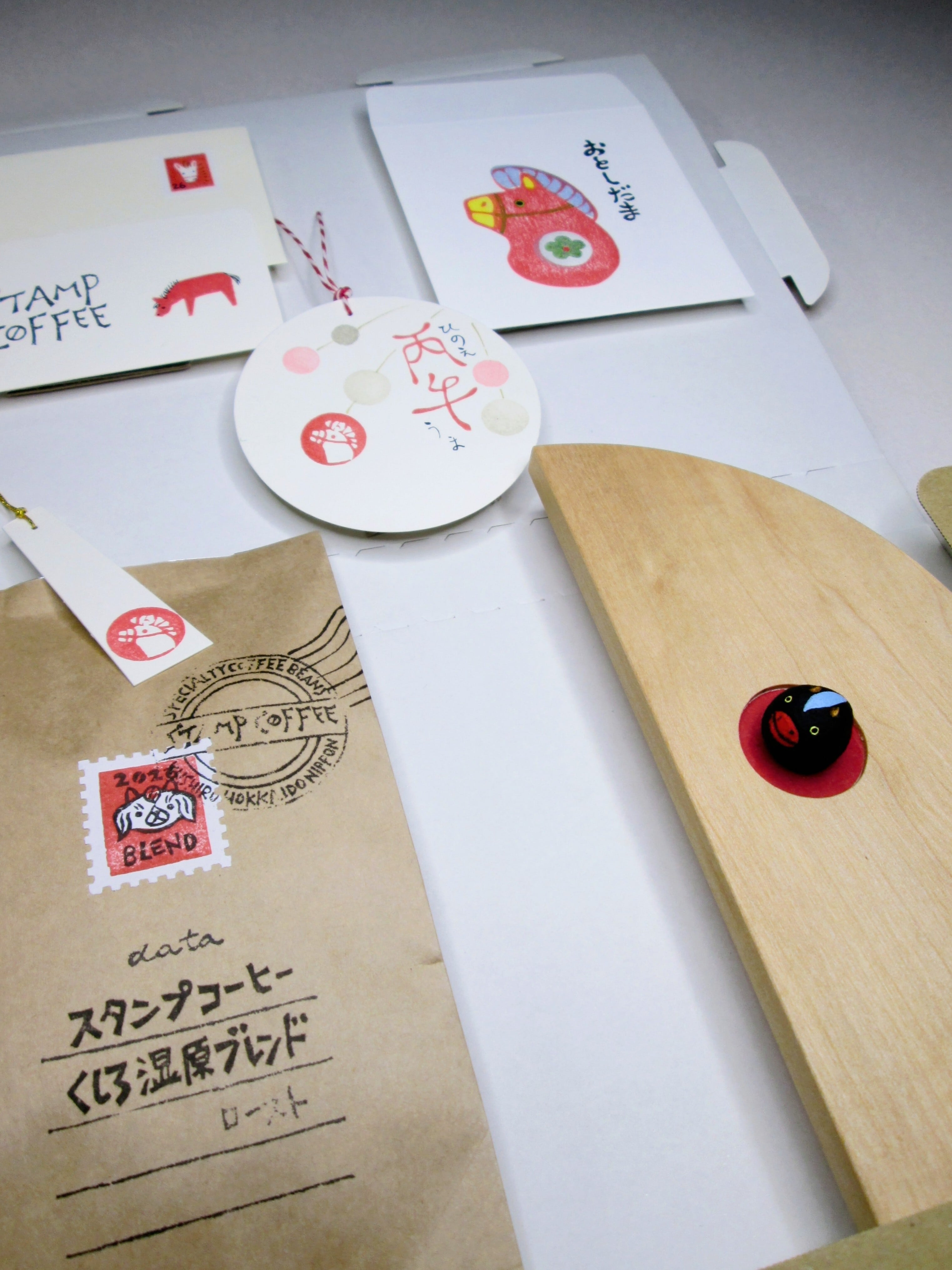くしろ湿原『正月』ブレンドとともに、手仕事のぬくもりを感じる縁起物を詰め合わせました。